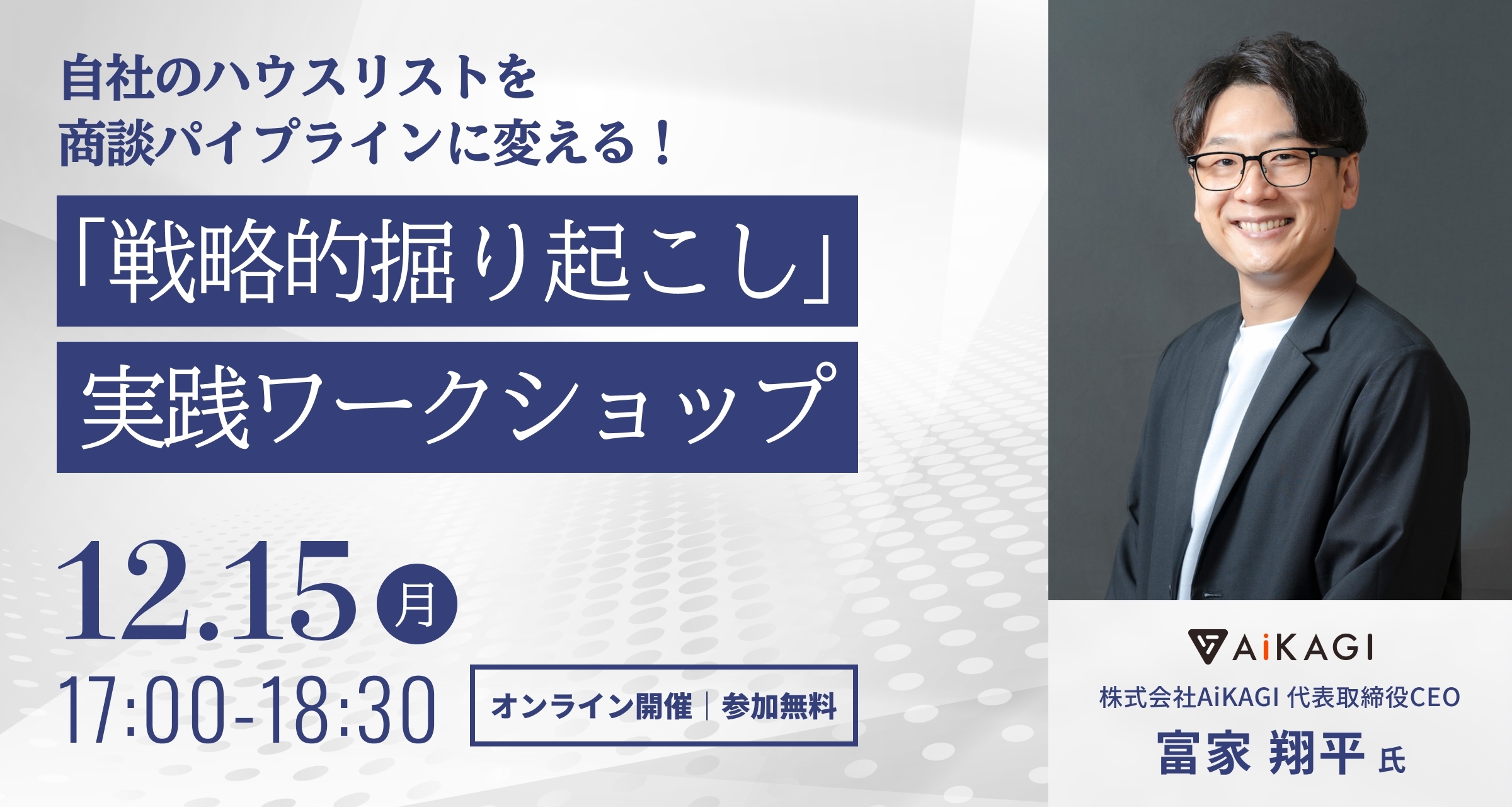- 講師: 富家 翔平 氏(株式会社AiKAGI 代表取締役 CEO)